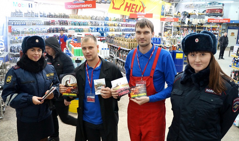 В магазинах автозапчастей сотрудники ГИБДД призывают автомобилистов к соблюдению скоростного режима на дорогах. Автоинспекторы разъясняют опасность превышения скоростного режима, особенно в зимний период.