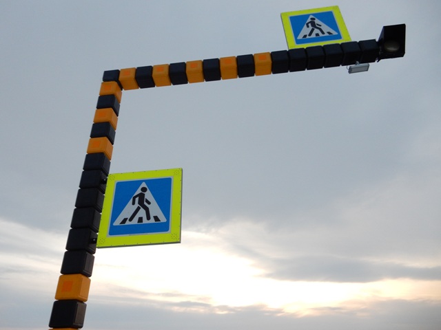 Данный проект впервые реализован в сибирском регионе. Основная инновационная составляющая – применение «Модуля дорожной безопасности КУБ-NEXT», запатентованной разработки местной группы компаний. Стойка пешеходного перехода облицована черно-желтыми пластиковыми кубами, которые сразу привлекают внимание водителей. Создание новой универсальной сигнальной системы – это качественно новый подход к организации тех мест, которые на дороге являются «зоной безопасности» для пешеходов.