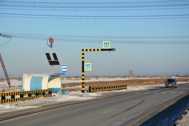 На краевой трассе Красноярск – Железногорск появился инновационный пешеходный переход, работающий за счет солнечной панели и ветрогенератора. Основное нововведение — применение специального модуля безопасности.