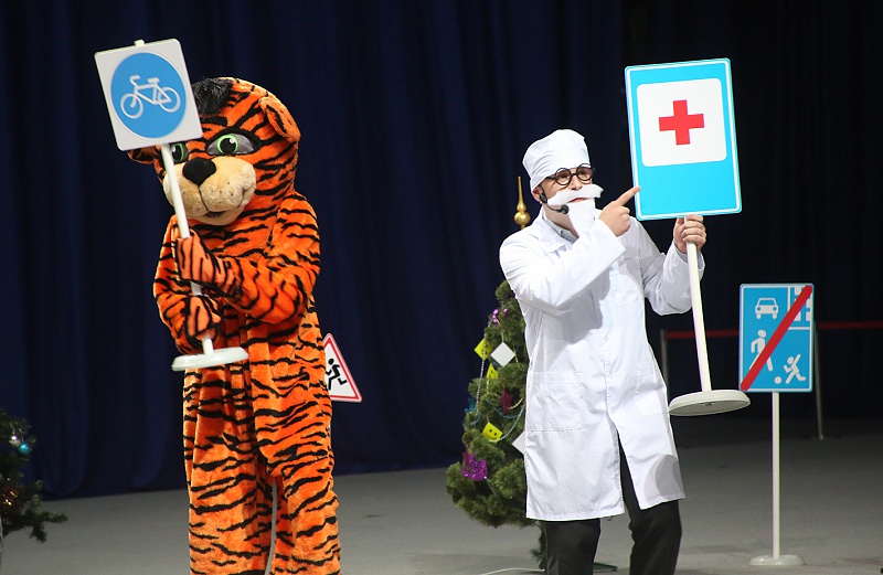 Праздничную новогоднюю атмосферу дополнил просмотр театрализованного представления на дорожную тематику «Приключения в Новогоднем лесу». Кроме того, дети приняли участие в конкурсах с полицейским Дедом Морозом и Снегурочкой, дискотеке с участием звезд российской эстрады, а также получили сладкие подарки.
