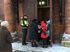 Верующие туляки всех возрастов, выходя со службы из Храма Преподобного Сергия Радонежского (г. Тула) получали памятки ТГМОО «ЮИДД».