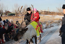 Верхом на олене дети прошли по пешеходным переходам города, продемонстрировав пешеходам и водителям необходимость соблюдения правил дорожного движения.
