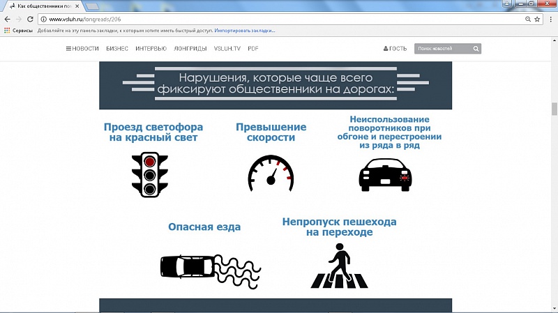 В лонгридах – мнения и интервью экспертов, инфографика опасных перекрестков и ситуаций на дорогах, графические алгоритмы по проблемам дорожной безопасности. В их создании приняли участие десятки экспертов: руководители правительства региона, автошкол, сотрудники ГИБДД, ученые, автоюристы, правозащитники и общественники.