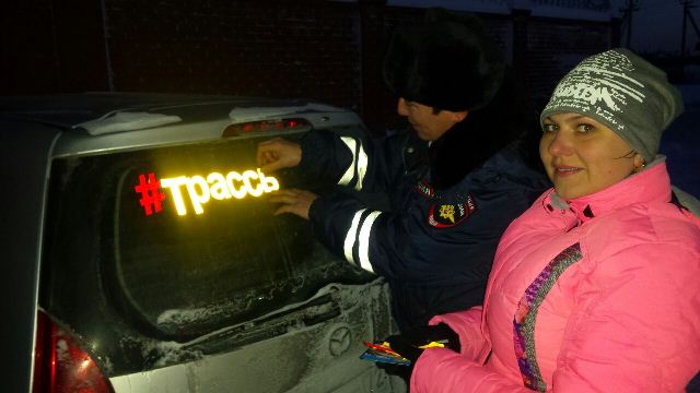 Светящийся хештег будет виден не только днем, но и в ночное время под светом фар позади идущих автомашин, тем самым призывая их водителей быть предельно внимательными в пути.