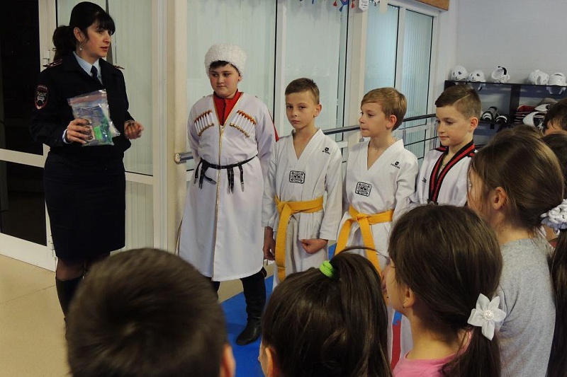 На базе филиала Адыгейской республиканской детско-юношеской спортивной школы олимпийского резерва в Майкопском районе автоинспекторы совместно с участником шоу детских талантов на телевизионном канале Артемом Мокровым провели акцию «Безопасная дорога к победе!».