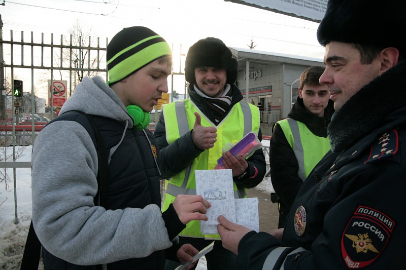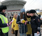 Сотрудники подмосковной Госавтоинспекции совместно с инспекторами ПДН, представителями линейного управления МВД России на транспорте, молодежными организациями, общественниками и студентами в рамках акции «Пассажир электропоезда – тоже пешеход!», напомнили жителям региона о соблюдении правил дорожного движения и обязательном ношении световозвращающих элементов в темное время суток.