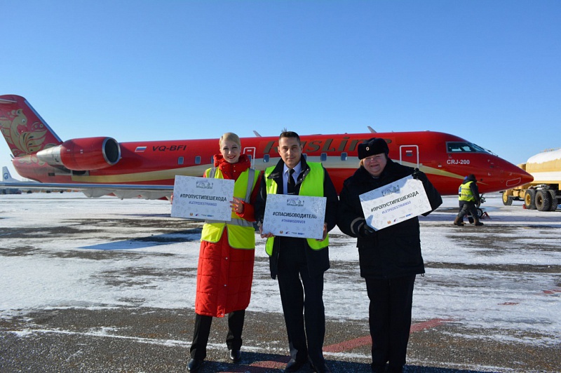 Инициативу автоинспекторов по проведению акции в рамках социальной кампании «Сложности перехода» поддержали директор аэропорта Виктор Неретин, а также лётный состав авиалайнеров.