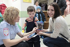 Маленькие пациенты получили от полицейских книжки-раскраски по безопасности дорожного движения, а взрослые – календари и памятки по перевозке юных пассажиров и профилактические наклейки на заднее стекло автомобиля.