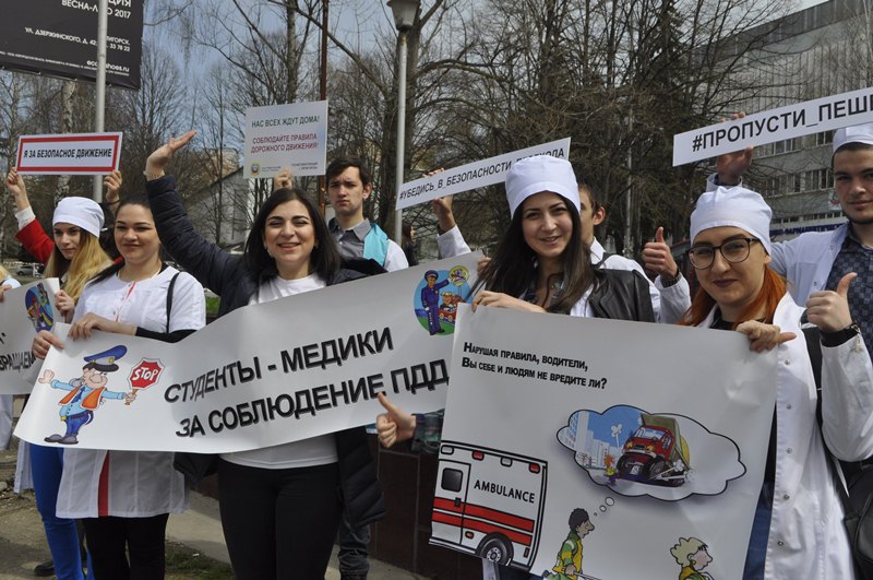 Более ста студентов-медиков обратились к водителям города-курорта Пятигорска с призывом соблюдать правила дорожного движения. Накануне с плакатами и листовками совместно с сотрудниками Госавтоинспекции будущие хирурги и травматологи провели акцию: беседовали с участниками дорожного движения, разъясняя, что уже на этапе обучения понимают, к каким необратимым последствиям приводит безответственное отношение к управлению транспортным средством.