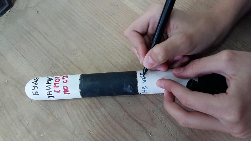 На уменьшенных копиях жезлов ребята написали советы для пешеходов. Готовые изделия дети передали сотрудникам подмосковной Госавтоинспекции, чтобы они во время несения службы вручили их участникам дорожного движения.
