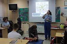 Врачи станции скорой медицинской помощи проводят для слушателей автошкол экспресс-урок по основам оказания первой помощи, уделяя внимание основным ошибкам, которые совершают неподготовленные и поддавшиеся панике свидетели дорожных аварий, помогая выбраться пострадавшим из поврежденных транспортных средств, а также на специальном тренажере демонстрируют, какие реанимационные мероприятия необходимо проводить пострадавшим в ДТП до приезда врачей и спасателей.