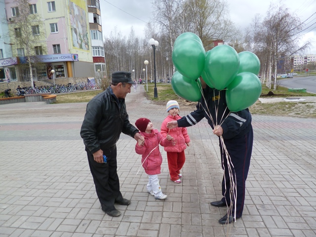 Инспекторы дорожно-патрульной службы в Нефтеюганске вручили десятки зеленых шаров юным пешеходам и велосипедистам, переходившим проезжую часть по правилам. Родителям, бабушкам и дедушкам, сопровождающим детей во время прогулок, дарили памятки и буклеты по ПДД.