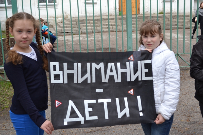 Мероприятие проходило на самом оживленном перекрестке города Кирс. Дети с подушками и тематическим плакатами в руках выстроились вдоль каждого направления движения транспортных средств на перекрестке, чтобы показать водителям незащищенность пешеходов на дорогах.
