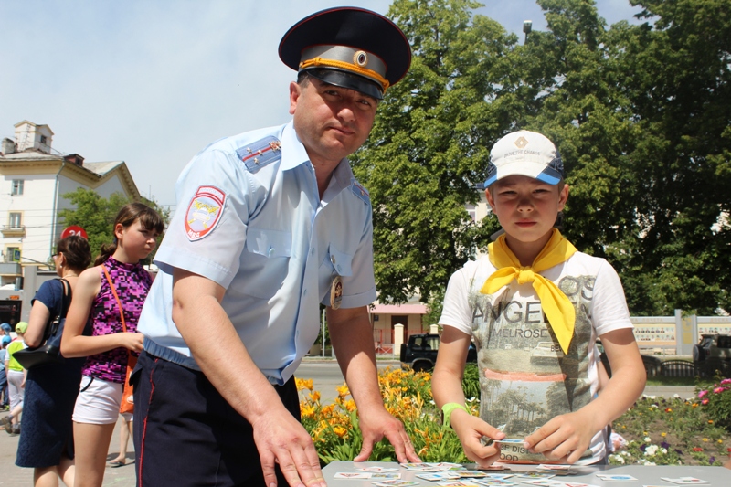 На площадке ГИБДД автоинспекторы беседовали с детьми о безопасном поведении на дорогах, проводили конкурсы и викторины по ПДД, раздавали наглядную агитацию. Самым массовым стал конкурс рисунков на асфальте, участники которого рисовали автомобили и пешеходов, дороги и средства организации движения. Рядом с площадкой сотрудники Госавтоинспекции выставили автомобиль и мотоцикл Госавтоинспекции, возле которых гости праздника охотно фотографировались, а желающие могли посидеть за рулем.