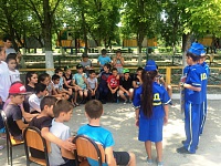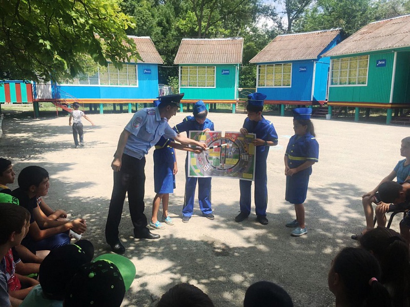 На базе крупного оздоровительного детского лагеря в Терском районе республики состоялись массовые занятия с детьми разных возрастных категорий. Юные инспекторы движения района напомнили школьникам правила безопасного пересечения проезжей части и основы моделирования безопасного маршрута из дома до образовательной организации.