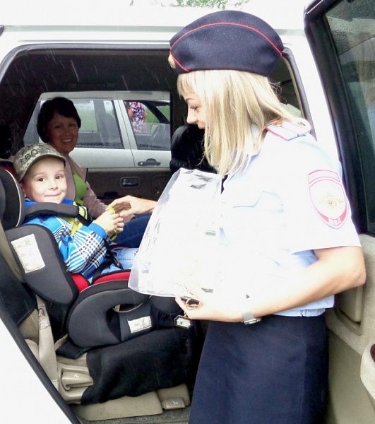 Возле детских садов сотрудники ГИБДД останавливали автомашины граждан. Юные инспекторы движения предлагали водителям вытянуть билет и ответить на три вопроса по правилам перевозки маленьких пассажиров. В награду за хорошие знания им вручались брошюры с Правилами дорожного движения.