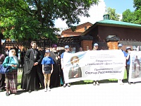 Специально к этому Празднику из своей небольшой пенсии председатель ТГМОО «ЮИДД» Галина Федоровна Артемова оплатила изготовление баннеров, посвященных Дню Памяти Преподобного Сергия Радонежского.