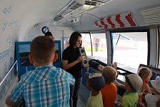 В подмосковном Подольске на площади у Дома культуры установили мобильную образовательную лабораторию для изучения детьми правил дорожного движения в теории и на практике.