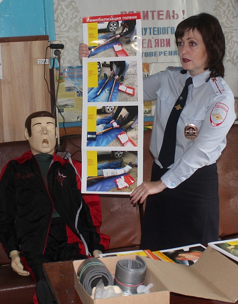 Организаторы демонстрировали на манекене способы оказания первой помощи: правила проведения искусственного дыхания, непрямого массажа сердца, иммобилизации верхних и нижних конечностей, остановку кровотечения, наложение повязок, жгута.