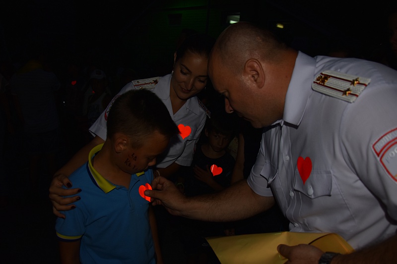 С наступлением сумерек сотрудники ГИБДД предложили детям провести «светящийся» флеш-моб «Яркое сердце». Инспекторы разъяснили ребятам, что аксессуары в виде сердца, которые они им вручили, являются световозвращающими элементами, позволяющими обеспечить видимость пешеходов в тёмное время суток.