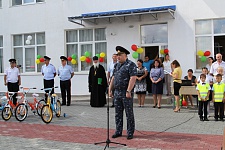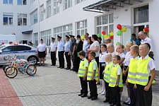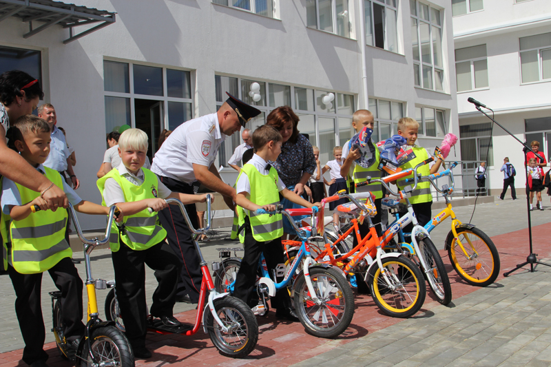 Гости поздравили школьников с началом нового учебного года, пожелали успехов в получении знаний и напомнили о важности изучения и соблюдения правил дорожного движения. Первыми на новой площадке по безопасности дорожного движения показали свои знания ПДД юные велосипедисты, затем учащиеся младших классов ознакомились с безопасным маршрутом движения.