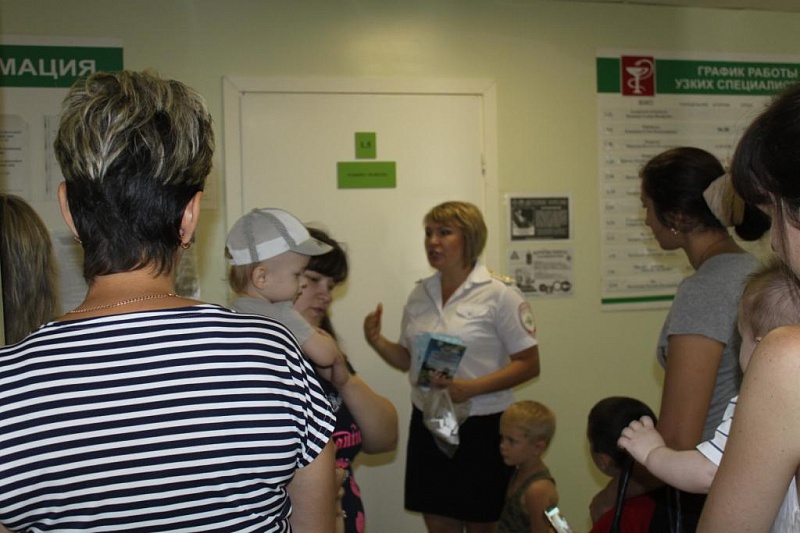 В детских поликлиниках Волгограда автоинспекторы проводят инструктажи по безопасности для юных пациентов и их родителей