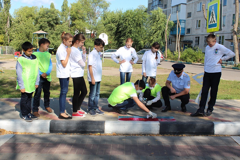ЮИДовцы, вооружившись баллончиками с краской и трафаретами, вышли на пешеходные переходы рядом со своей школой и на тротуаре перед пешеходным переходом нанесли лозунг «Стой! Посмотри по сторонам». Таким образом ребята хотят предупредить своих друзей и всех учеников школы, что прежде чем выйти на проезжую часть, необходимо убедиться в отсутствии приближающегося автомобиля.