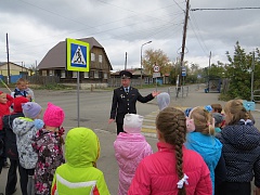 После проверки теоретических знаний, полицейские провели практическое занятие на перекрестке у входа в образовательное учреждение. Автоинспекторы рассказали детям о преимуществах контрастной желто-белой «зебры», а так же напомнили пешим участникам движения, для чего перед проезжей частью установлены пешеходные ограждения.