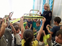 Символично презентовали новое издание в День учителя воспитанники дошкольных образовательных учреждений. Вооружившись атрибутами дорожной безопасности, они призвали всех участников мероприятия использовать световозвращающие элементы.