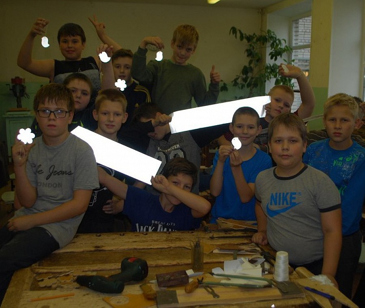 Педагоги вместе с детьми обсудили сложившуюся ситуацию и приняли решение изготовить световозвращатели для всех учеников в школьной столярной мастерской.