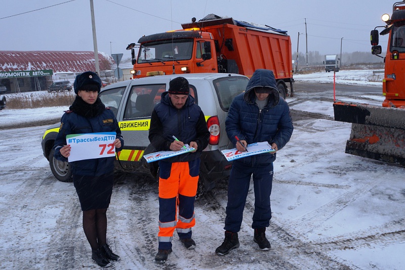 Сотрудники Тюменского дорожного ремонтно-строительного управления, осуществляющие содержание федеральной автодороги Екатеринбург-Тюмень, поддержали акцию «Трассы без ДТП».