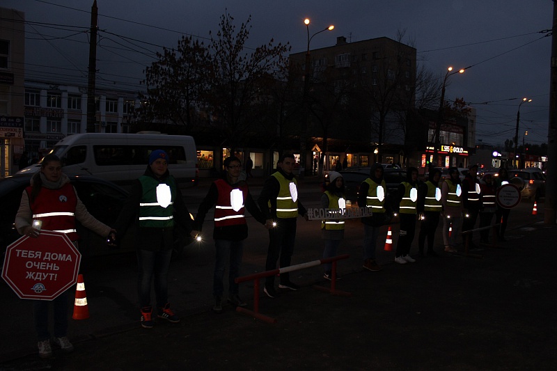 В течение недели сотрудники ГИБДД при поддержке студентов, волонтеров, общественников, школьников и их родителей наглядно демонстрировали участникам дорожного движения эффективность использования световозвращающих элементов в темноте, разъясняли правила безопасного перехода проезжей части, и посредством громкоговорящего устройства патрульного автомобиля призывали водителей быть особенно внимательными вблизи пешеходных переходов.
