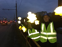 В Тольятти учащиеся машиностроительного колледжа в ходе акции призвали горожан к обязательному использованию световозвращающих элементов с помощью специальных светящихся ладошек.