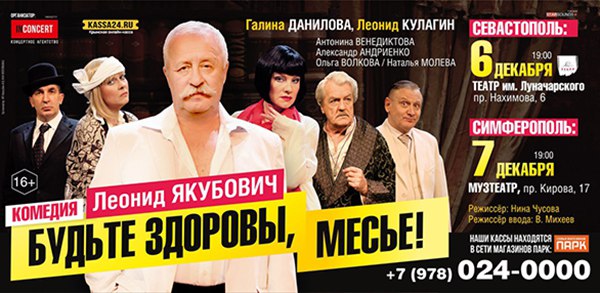«Я получил права в 64 году, мне 72. Я жив до сих пор, потому что пристегиваю ремни в машине, и это не игрушки, особенно когда дети есть, - сказал народный артист России Леонид Якубович автолюбителям Крыма. - Легко взять и пристегнуться, другое дело - конечно, хотелось бы, чтоб ремни были удобные, но пока других нет. Ребята, пристегивайтесь. Вопрос жизни и смерти». В Крымском музыкальном академическом театре прошел спектакль - комедия "Будьте здоровы, месье!", где Якубович играет главную роль.