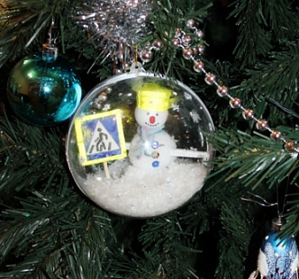 Специальные шары украсили новогоднюю ёлку на празднике по дорожной безопасности и напомнили гостям о необходимости соблюдать правила дорожного движения, использовать ремни безопасности и детские кресла во время поездки на автотранспорте. Такие игрушки – с символами всероссийской кампании по безопасности дорожного движения – сделаны на Клинском предприятии народных художественных промыслов по заказу Госавтоинспекции Подмосковья. Ребята, пришедшие на праздник по БДД, участвовали в конкурсах на лучшие знания дорожного движения. Победитель получил награду: первый уникальный шар ручной работы с нанесенной символикой интернет-кампании «Пристегнись, Россия!»