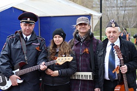 Вокально-инструментальный ансамбль (ВИА) Управления ГИБДД Красноярского края «Регион 24» поздравил жителей города с Днем Победы. Накануне праздника в центре Красноярска в сквере Победителей возле скульптурной группы «Журавли моей памяти» состоялся концерт. Со сцены звучали песни военных лет. Горожане – а это и ветераны, и пожилые люди-труженики тыла, и люди средних лет, и молодежь – внимательно слушали и подпевали музыкантам и певцам из ГИБДД Красноярска.