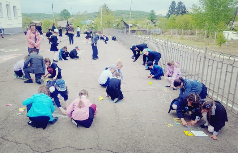Асфальт школьного двора покрылся множеством красочных рисунков. Дети изображали перекрестки, пешеходные переходы, дорожные знаки, светофоры, с удовольствием творя свои яркие, необычные и красочные картины.