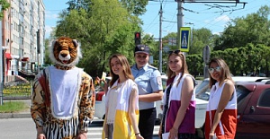 Герои мультфильмов и волонтеры Абакана обучают детей безопасности на переходах