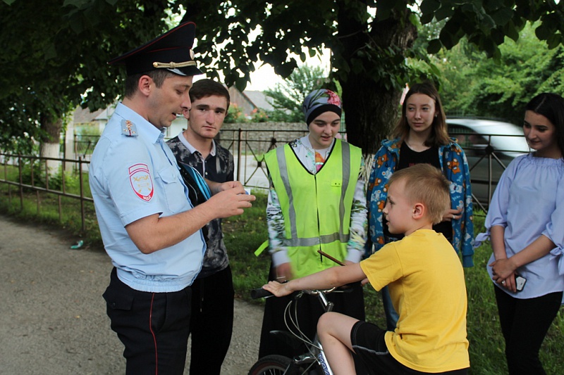 Волонтеры и автоинспекторы обучают детей безопасному катанию на велосипедах во дворах