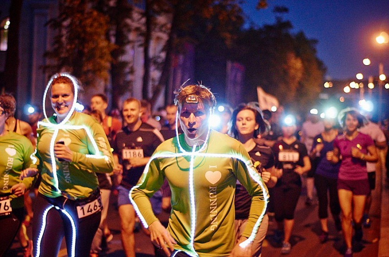 Массовый забег по ночной Москве пройдет после заката 28 июля. Старт в Лужниках. Участники пробегут по Фрунзенской и Пречистенской набережным, мимо зданий президиума Российской академии наук, Национального центра управления обороной Российской Федерации, Андреевского и Крымского мостов, фабрики «Красный октябрь» и Храма Христа Спасителя.