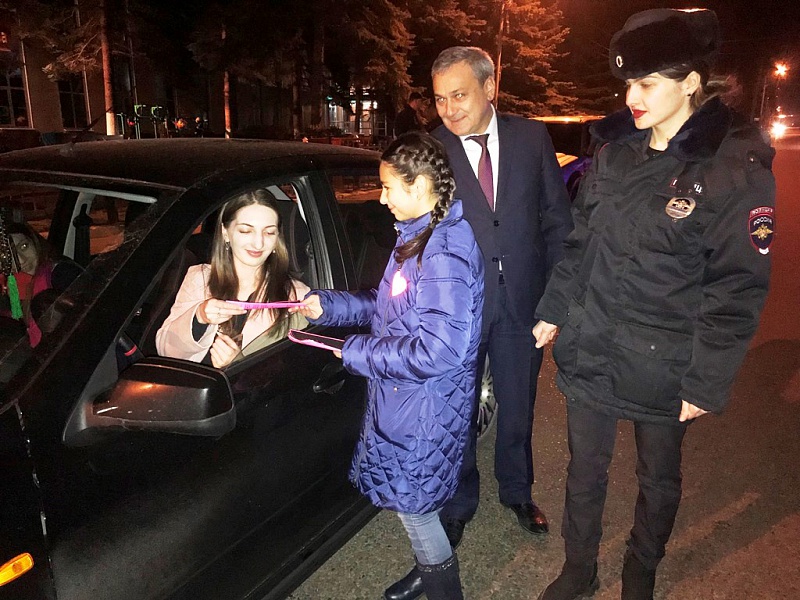 Инспекторы ГИБДД и гражданские активисты Эльбрусского района Кабардино-Балкарии провели вечернюю инсталляцию «Засветись». Их поддержал и глава администрации городского поселения Тырныауз Руслан Джаппуев.
