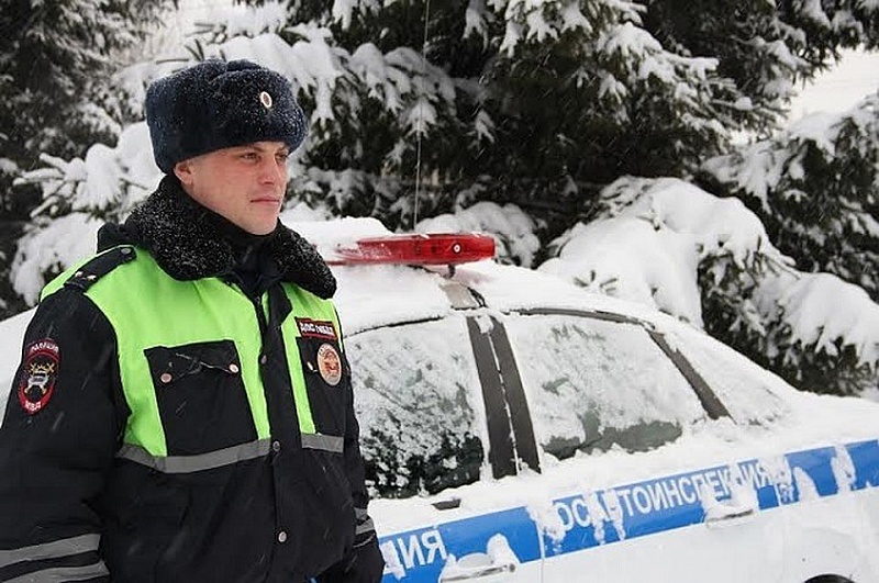 Автоинспекторы оказывают помощь участникам дорожного движения в сложной ситуации резкого похолодания