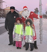 Дед Мороз и Снегурочка напоминали водителям, как важно соблюдать ПДД и быть внимательными на дороге. В предпраздничной суете в потоке интенсивного движения автомобилей и неблагоприятных погодных условий велика вероятность попадания в ДТП. «В Новый год без ДТП» отправляли жителей Дед Мороз и Снегурочка. Они проводили с пешеходами беседы о необходимости соблюдения Правил дорожного движения и просили быть внимательными особенно при переходе проезжей части. Сказочные персонажи напоминали о световозвращающих элементах, которые необходимо использовать в темное время суток, чтобы водитель всегда смог заметить пешехода. ЮИДовцы вручали всем участникам дорожного движения поздравительные открытки с добрыми пожеланиями в наступающем Новом году.
