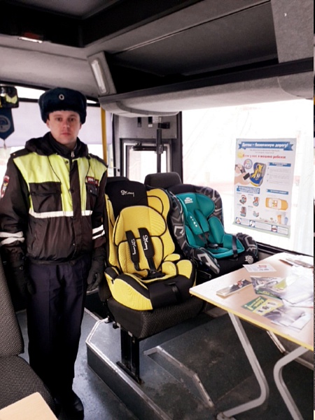 В агитационном автобусе родителям демонстрируются различные виды удерживающих устройств для перевозки детей, разъясняются правила их выбора. Здесь же можно посмотреть шоковые видеоролики с мест ДТП и краш-тесты детских удерживающих устройств. В автобусе развернута выставка световозвращающих приспособлений и аксессуаров, автоинспекторы раздают памятки по их применению и размещению на одежде и школьных ранцах. Каждому ребенку, не имеющему на одежде светоотражателей, полицейские вручают брелок-фликер.