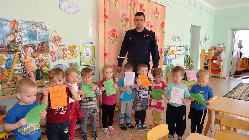 Автоинспектор поиграл с детьми, показав, как работают ремни безопасности в детском автокресле и как они защищают от травм. Полицейский дал задание малышам контролировать папу и маму, бабушку и дедушку, чтобы они пристегивались ремнями безопасности.