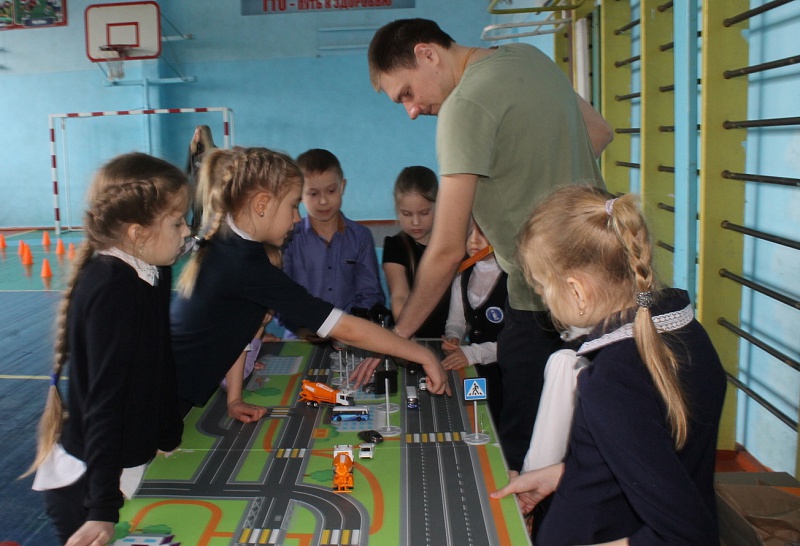 Занятия идут в форме увлекательной квест-игры, в ходе которой ребята пробуют себя в роли велосипедистов, пассажиров автобуса, автомобилистов и пешеходов. В спортзалах школ размещены различные интерактивные площадки. На импровизированном перекрестке с макетами светофоров и дорожных знаков школьники отрабатывают правила перехода проезжей части по светофору и без него.