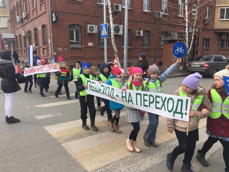 Более двух тысяч школьников вышли на улицы с баннерами и призвали к дорожной безопасности