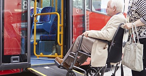 Для того, чтобы трап спустился на тротуар, пассажиру с ограниченными возможностями необходимо нажать на кнопку. Транспорт оборудован дополнительными поручнями и площадкой для колясок. Проезд для инвалидов бесплатный, а пенсионеры могут воспользоваться льготой.