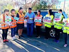 Полицейские напомнили взрослым участникам дорожного движения правила безопасного поведения на дороге, а юным пешеходам объяснили, как правильно переходить дорогу, вести себя вблизи проезжей части и применять световозвращающие элементы. ЮИДовцы обратились к автомобилистам с просьбой соблюдать скоростной режим и при перевозке детей обязательно применять детские удерживающие устройства.