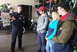 В городе Старая Русса сотрудники ГИБДД провели профилактические встречи с потенциальными покупателями двухколесного транспорта. Обсуждались вопросы необходимости использования средств пассивной защиты при управлении велосипедами, мотоциклами, гироскутерами и моноколесами.